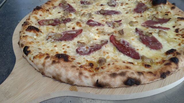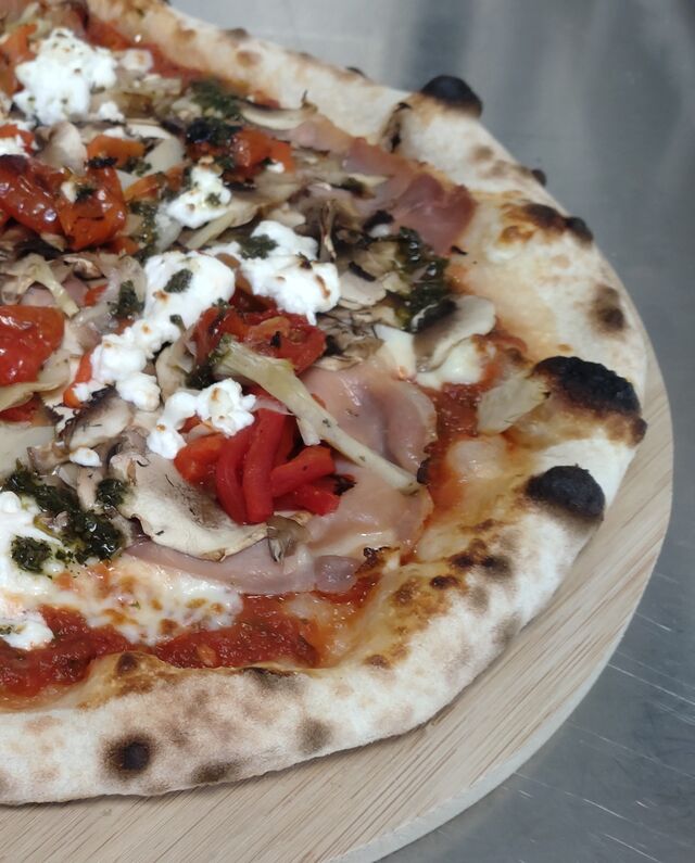 La pâte est élaborée chaque jour à base de farine 100% italienne grâce à la recette apprise du Maître pizzaiolo Éric Riem. Elle repose ensuite plusieurs jours afin de développer tranquillement et de libérer ses arômes.